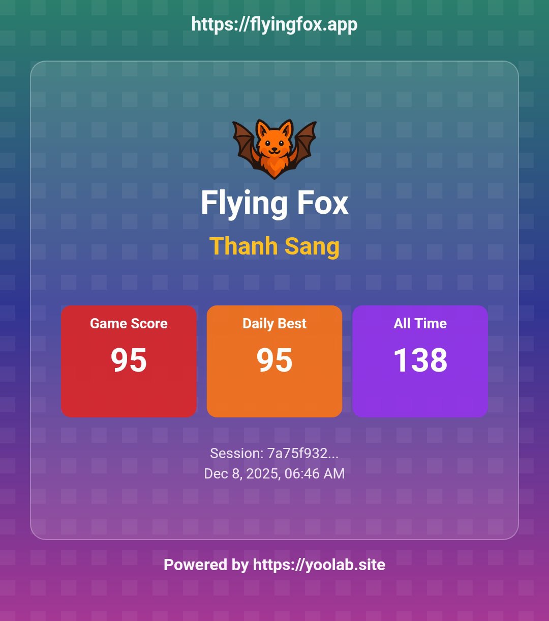 Flying Fox brings the addictive gameplay of classic arcade flyers into the Web3 era. Navigate through obstacles, rack up your score, and earn real token rewards based on your skill level.